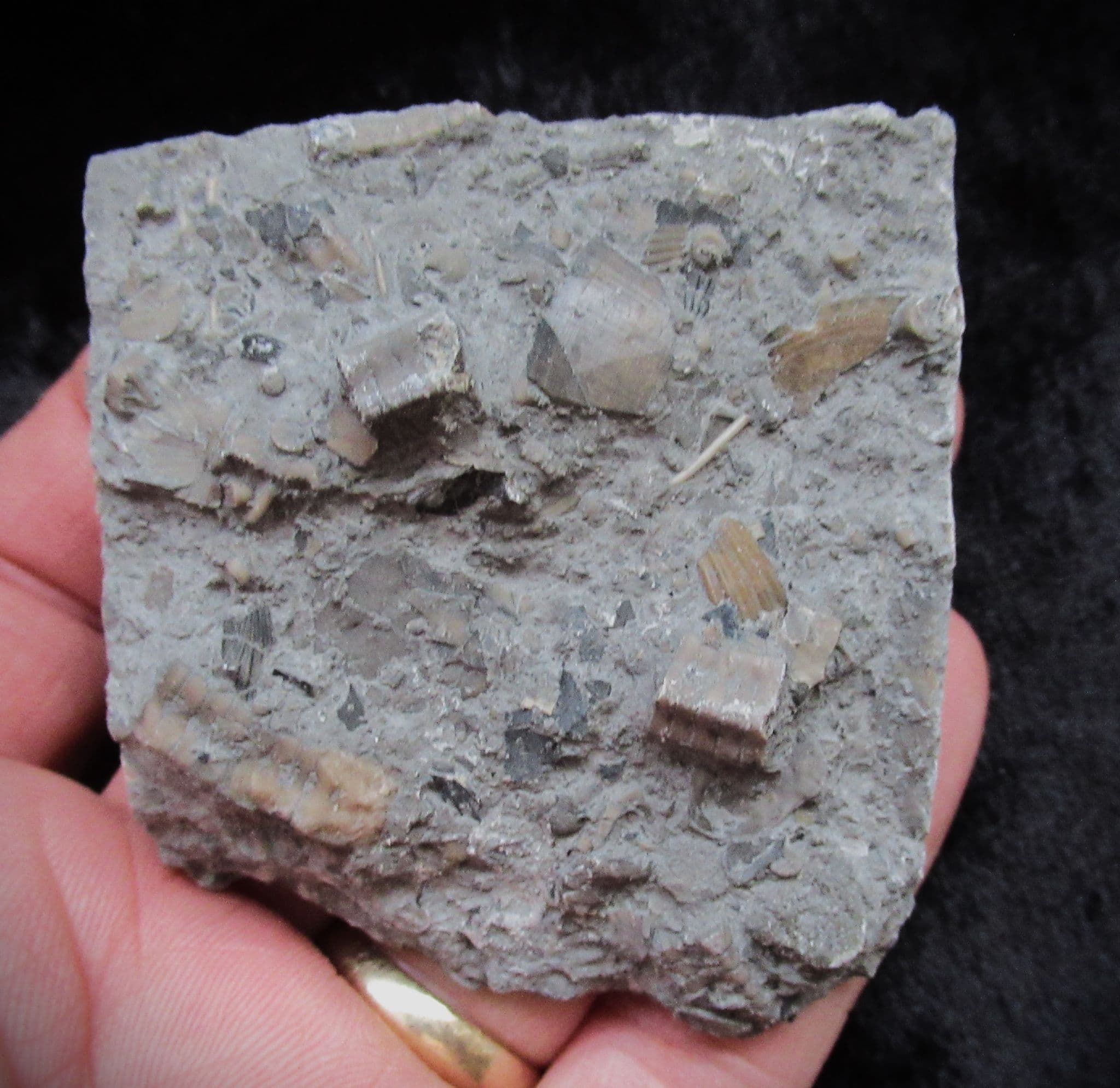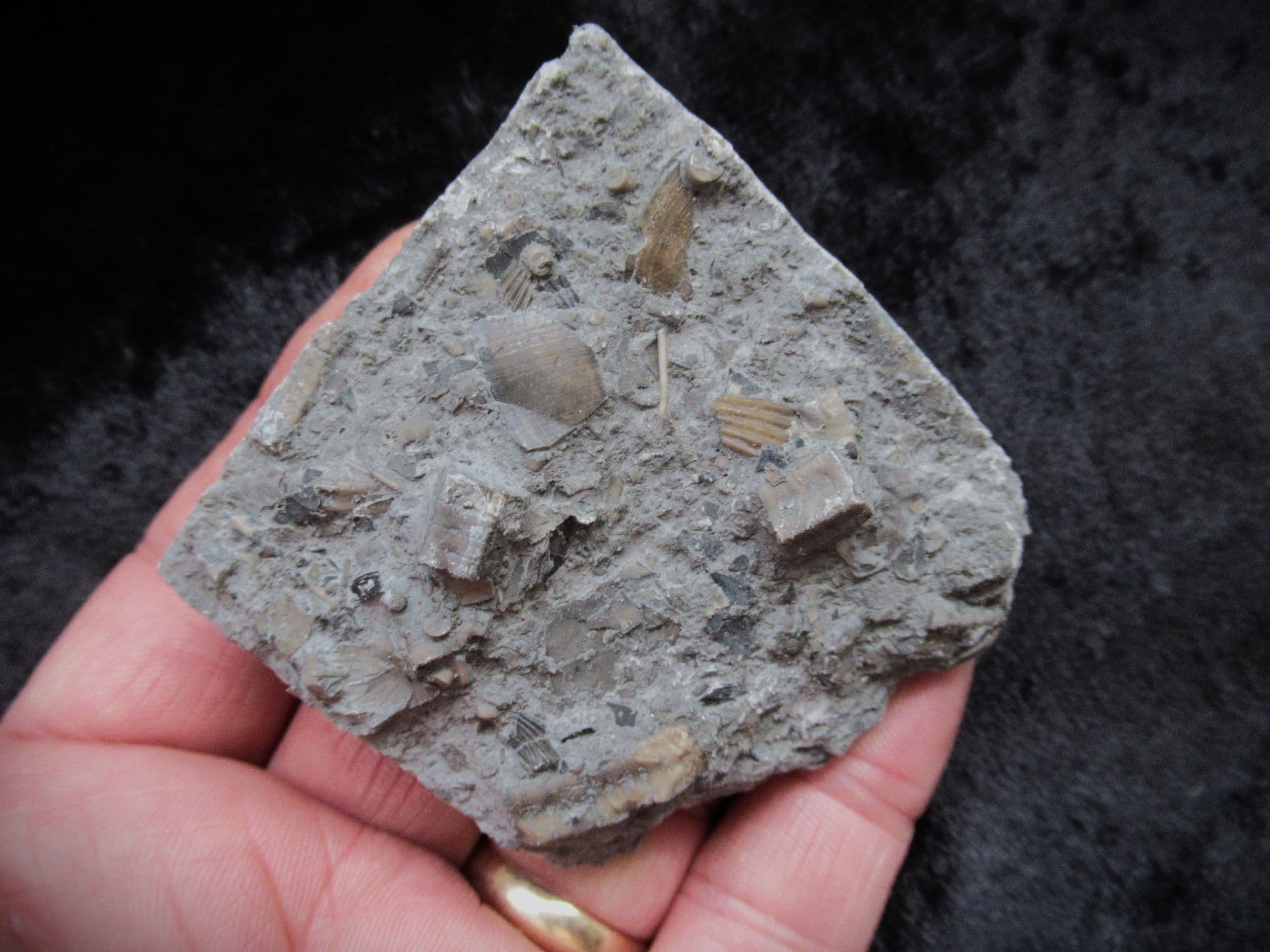 Star shaped Pentacrinites Crinoid ossicles,along with lots of other fossil detritus,including a small sea urchin spine,bits of bivalves and lots more.