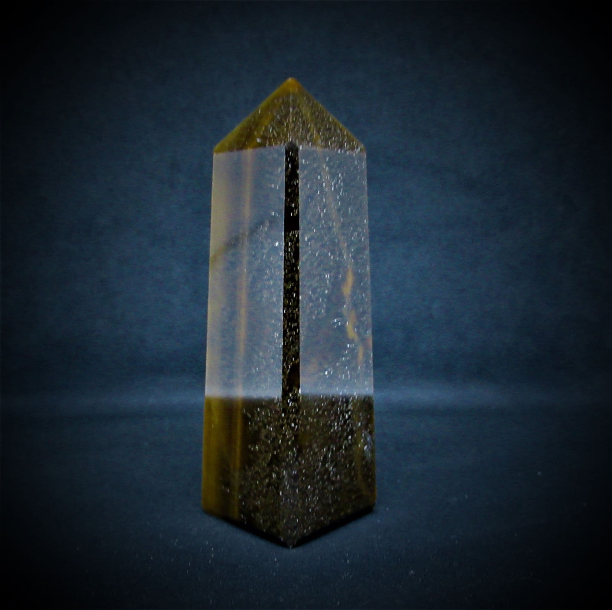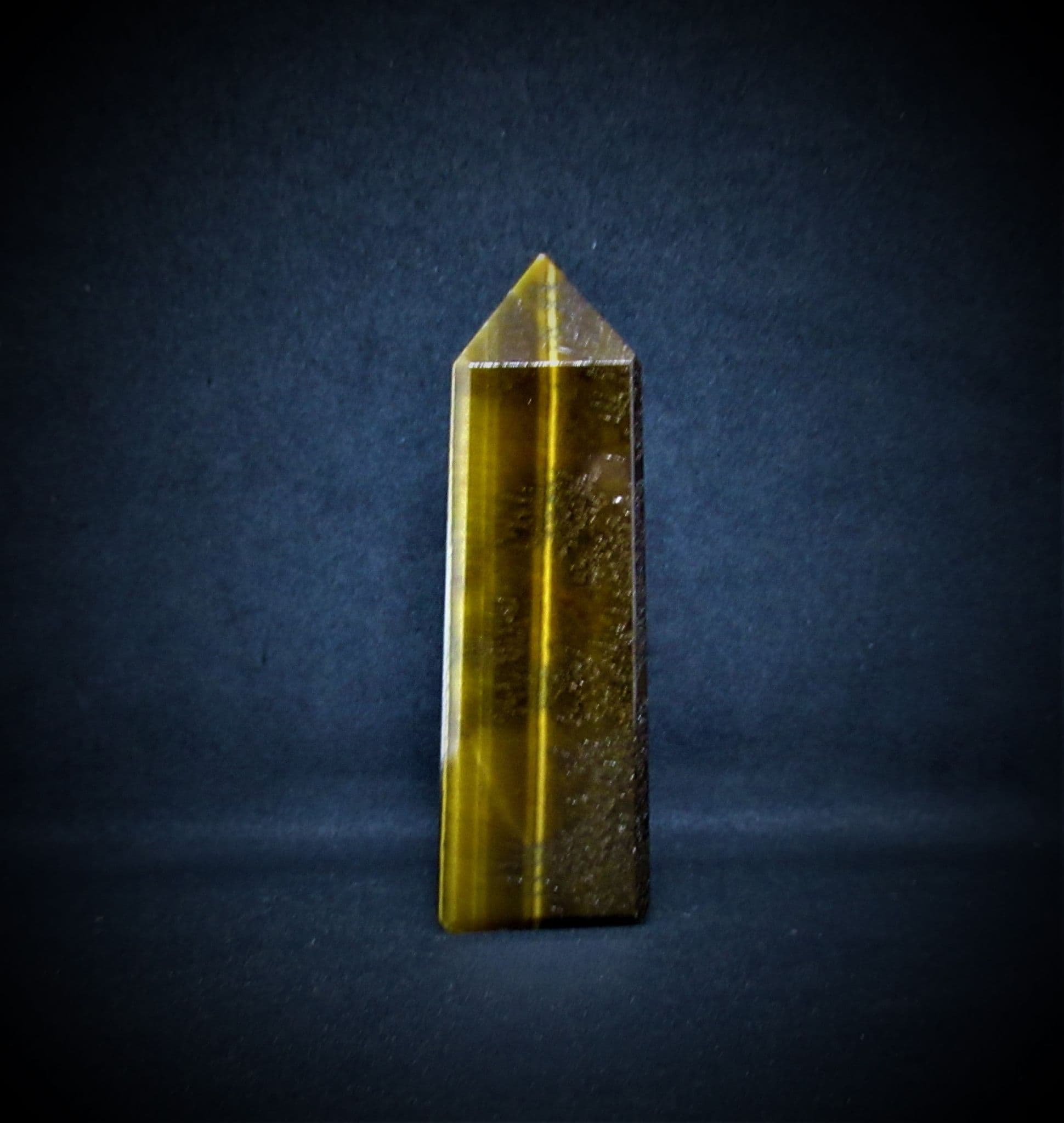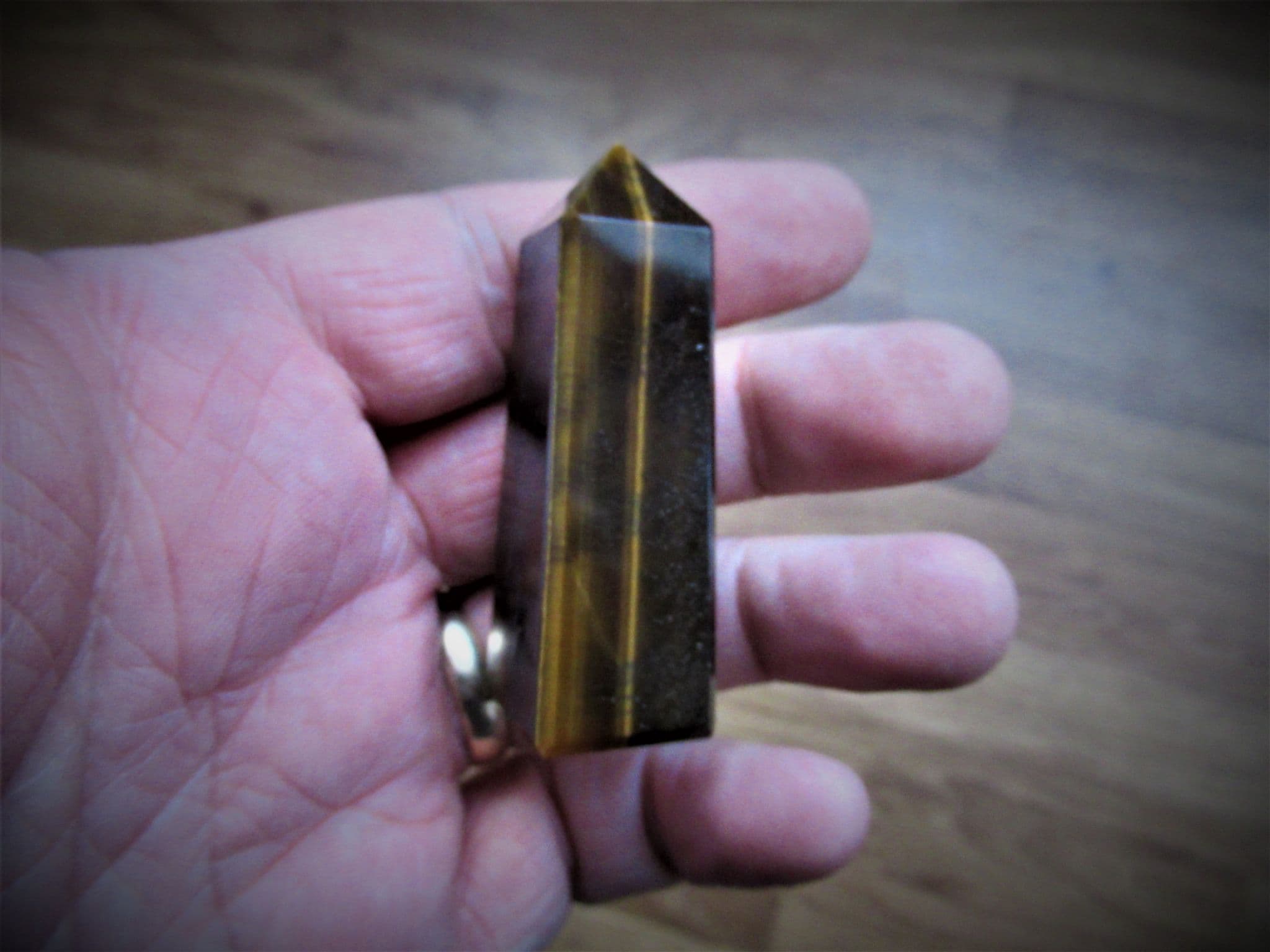 Beautiful shimmering bands of gold,black and Bronze,a tower carved from a single piece of Natural Tigers eye and considered to be very good as a protection against bad happenings!